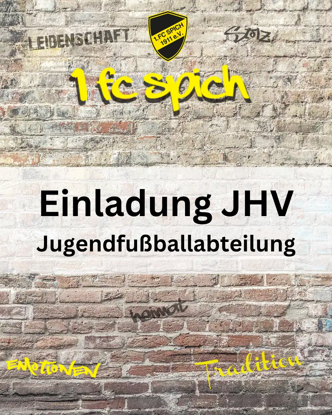 Die jährliche Mitgliederversammlung der Jugendabteilung des 1. FC Spich steht an und findet am 30. März ’26 um 18.00 Uhr im Jugendraum HESI statt. Alle Mitglieder sind