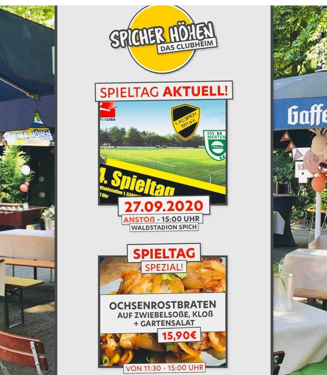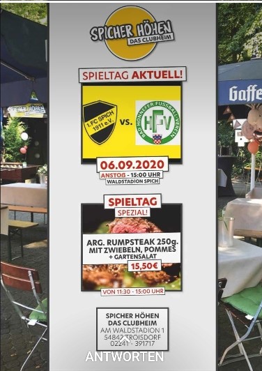 ....Sonntag auf die Spicher Höhen zu kommen. 1.Spieltag und ein Special im Clubheim. Unser FC und "Das Clubheim" laden ein!